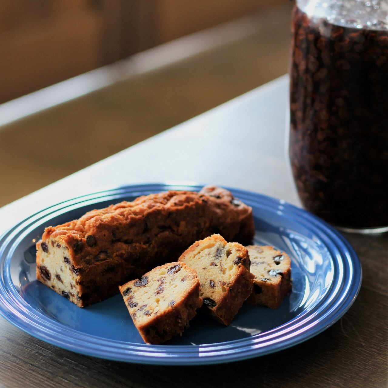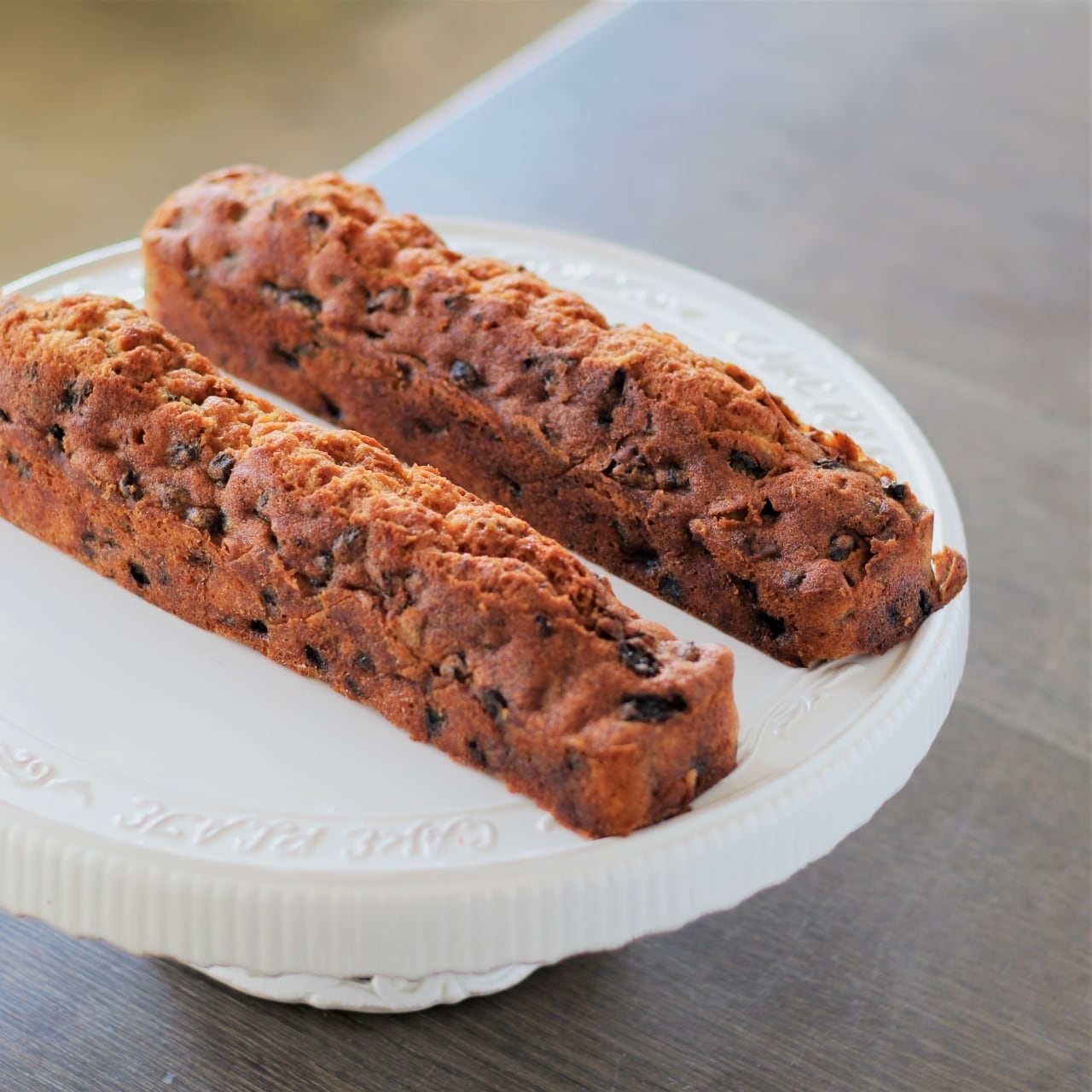 ラム酒に浸したモハベレーズンを混ぜて焼き上げ、仕上げにも香り豊かなラム酒をたっぷり浸しているので、しっとりとした食感、上品な甘さとなっています。